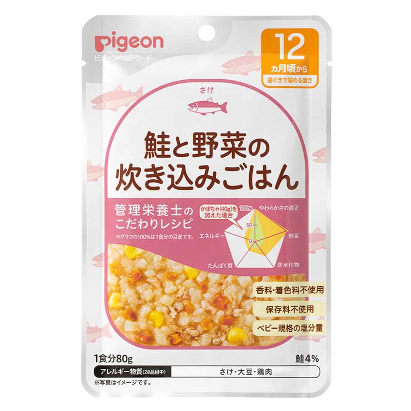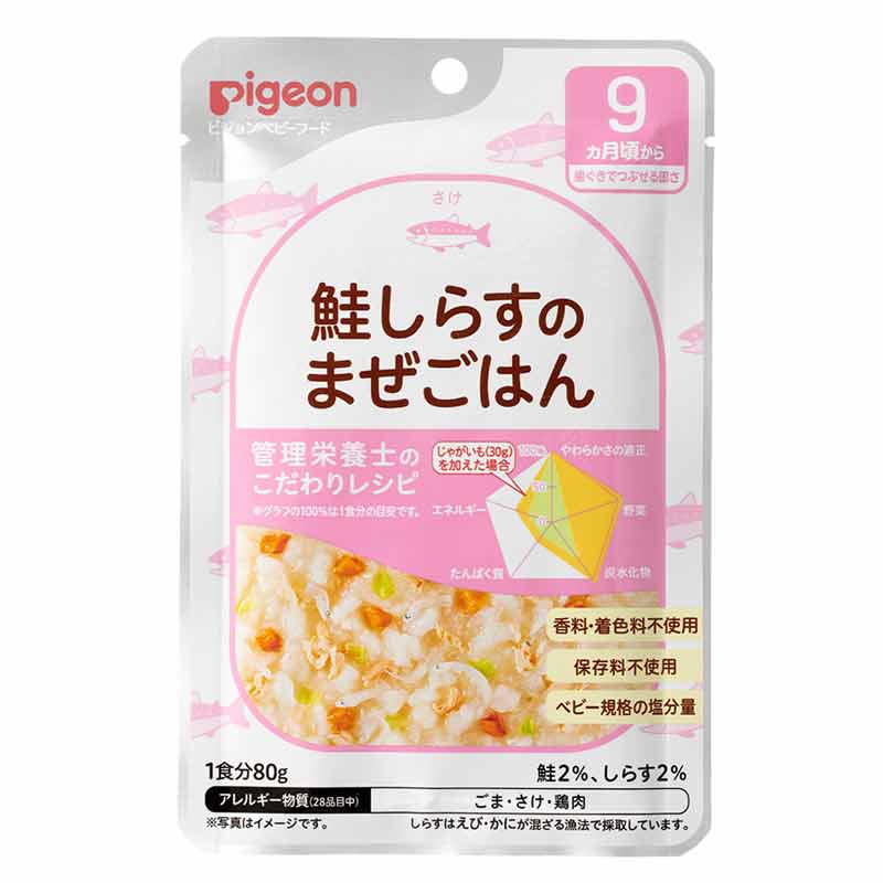精白米(国産)、野菜(にんじん、たまねぎ、キャベツ)、しらす干し、鮭、オイスターエキス、チキンエキス、ごま油、食塩/増粘剤(加工でん粉)